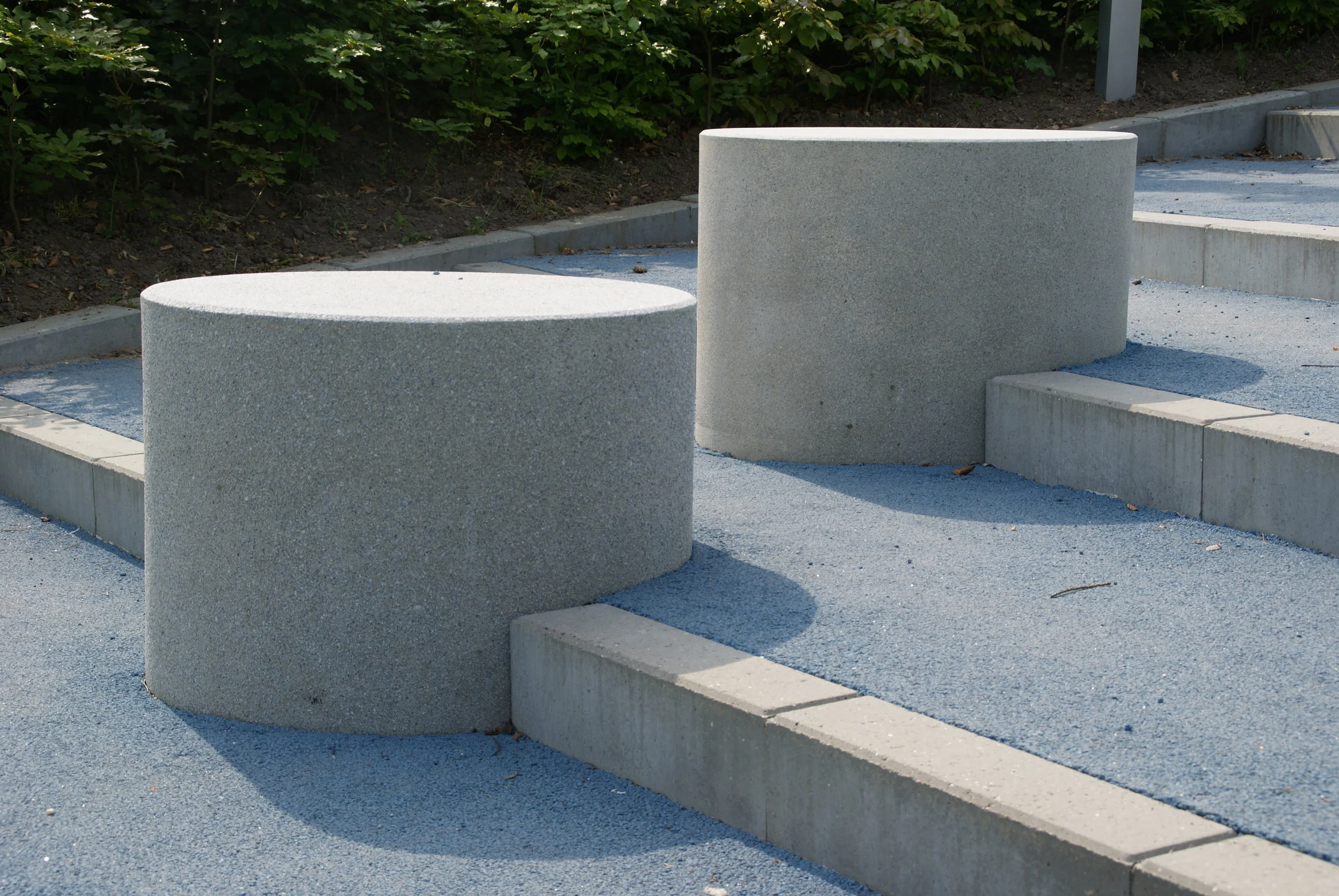 Vandtrappen belægges med blå asfalt og udsmykkes med cirkulær betonplinte, der fungerer både som en kunstnerisk udsmykning og som opholdsmulighed. Der placeres pullerter og pullertlamper, og der beplantes med bøgepur og Pyramide eg, der som et grønt element indrammer vandtrappen.