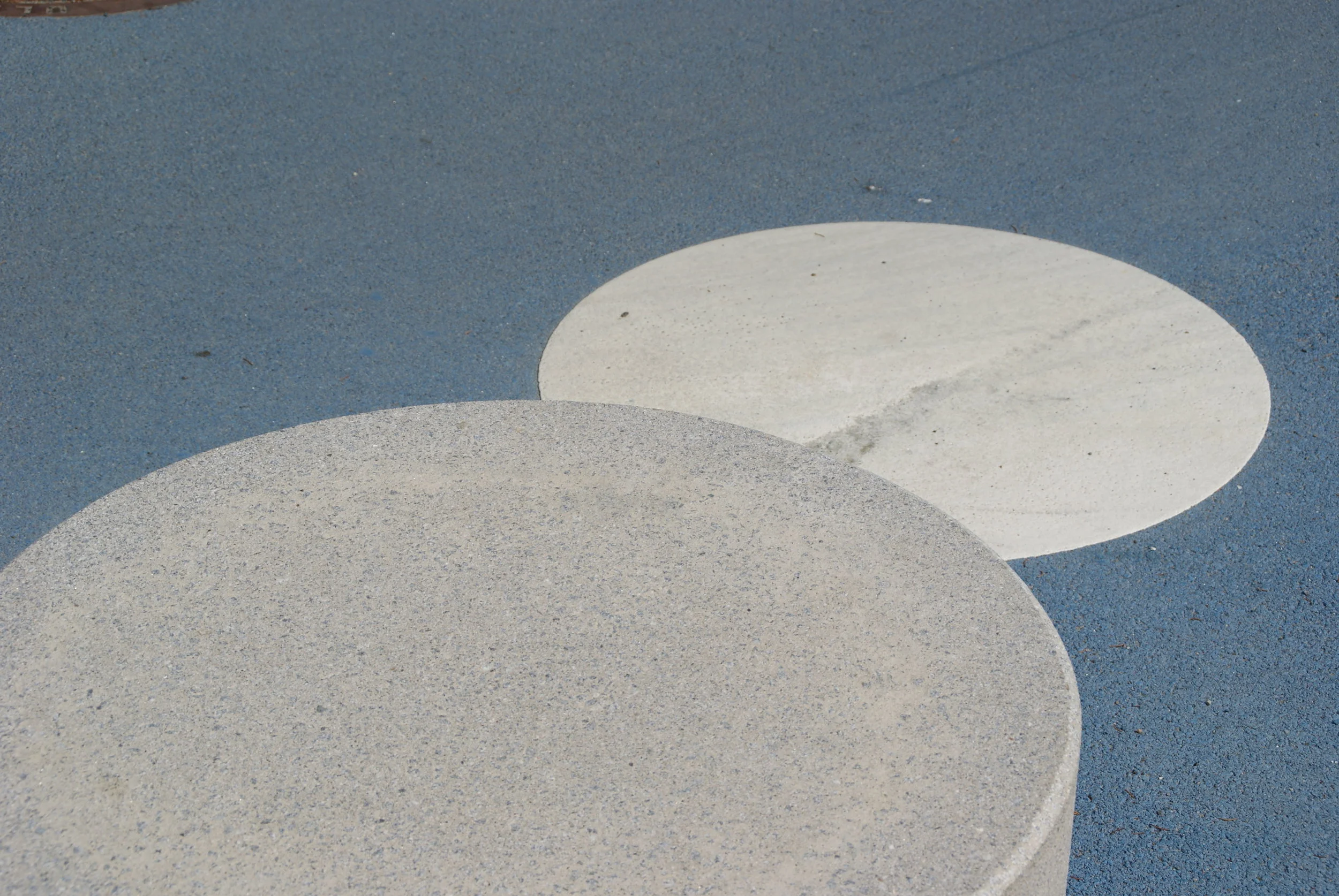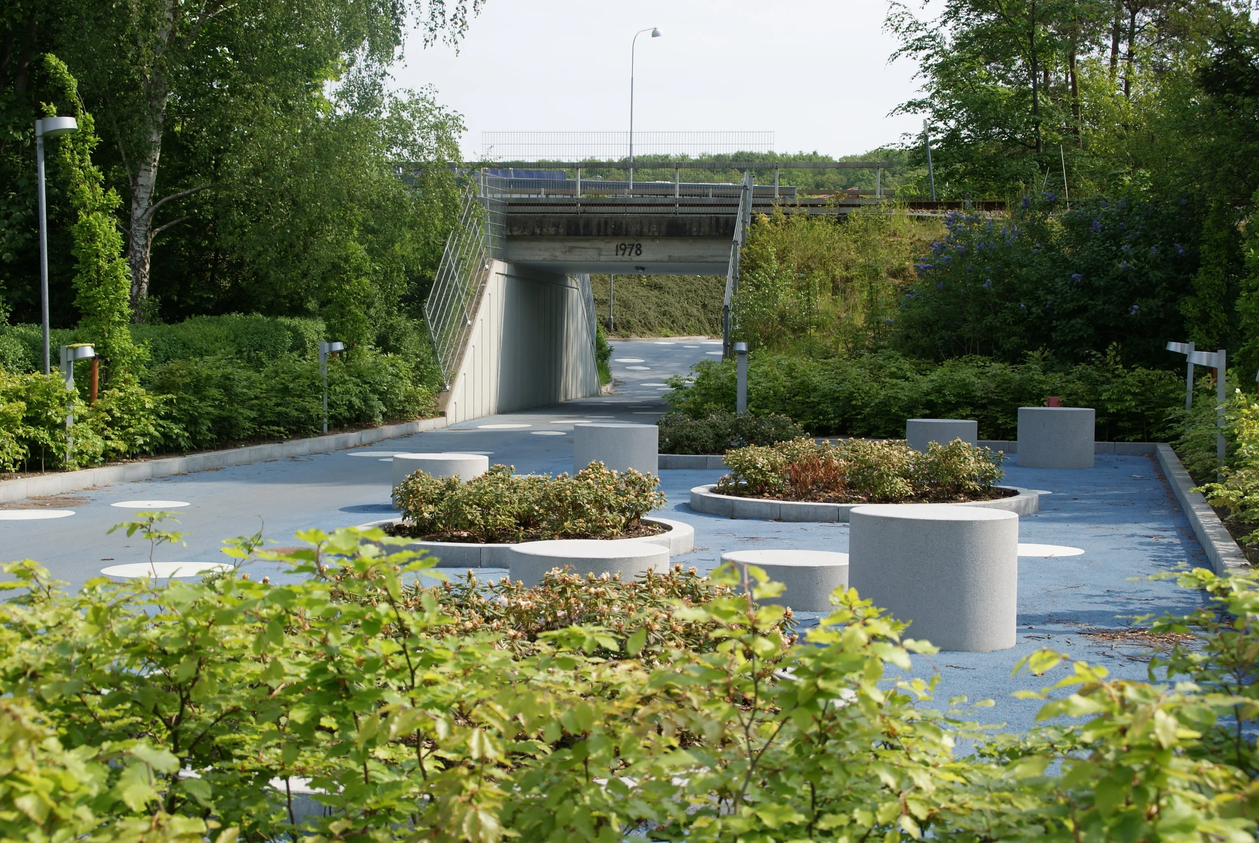 Den eksisterende belægning på cykel-gangsti fra vandtrappe og frem til Klostervej ændres så den ligeledes bliver anlagt i blåasfalt, og belægningen udsmykkes med cirkulære termoplastfigurer.