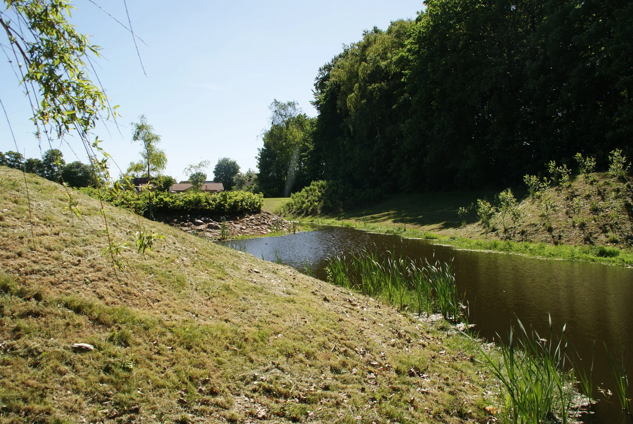 Søen, højene og opholdspladsen er nænsomt indarbejdet og tilpasset den eksisterende park, udformning og funktion.